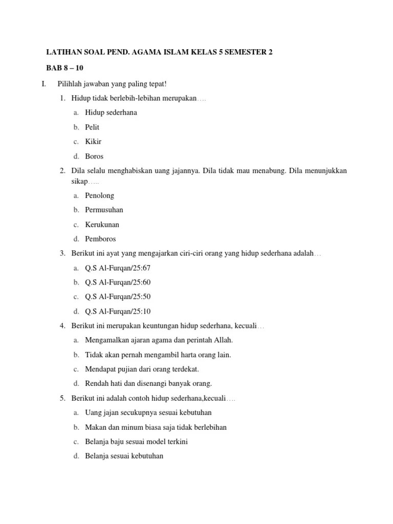 Soal Pai Kelas 5 Semester 2 - Soal Uts Sd Kelas 5 Semester 2 Genap Soalujian Net : Maybe you would like to learn more about one of these?